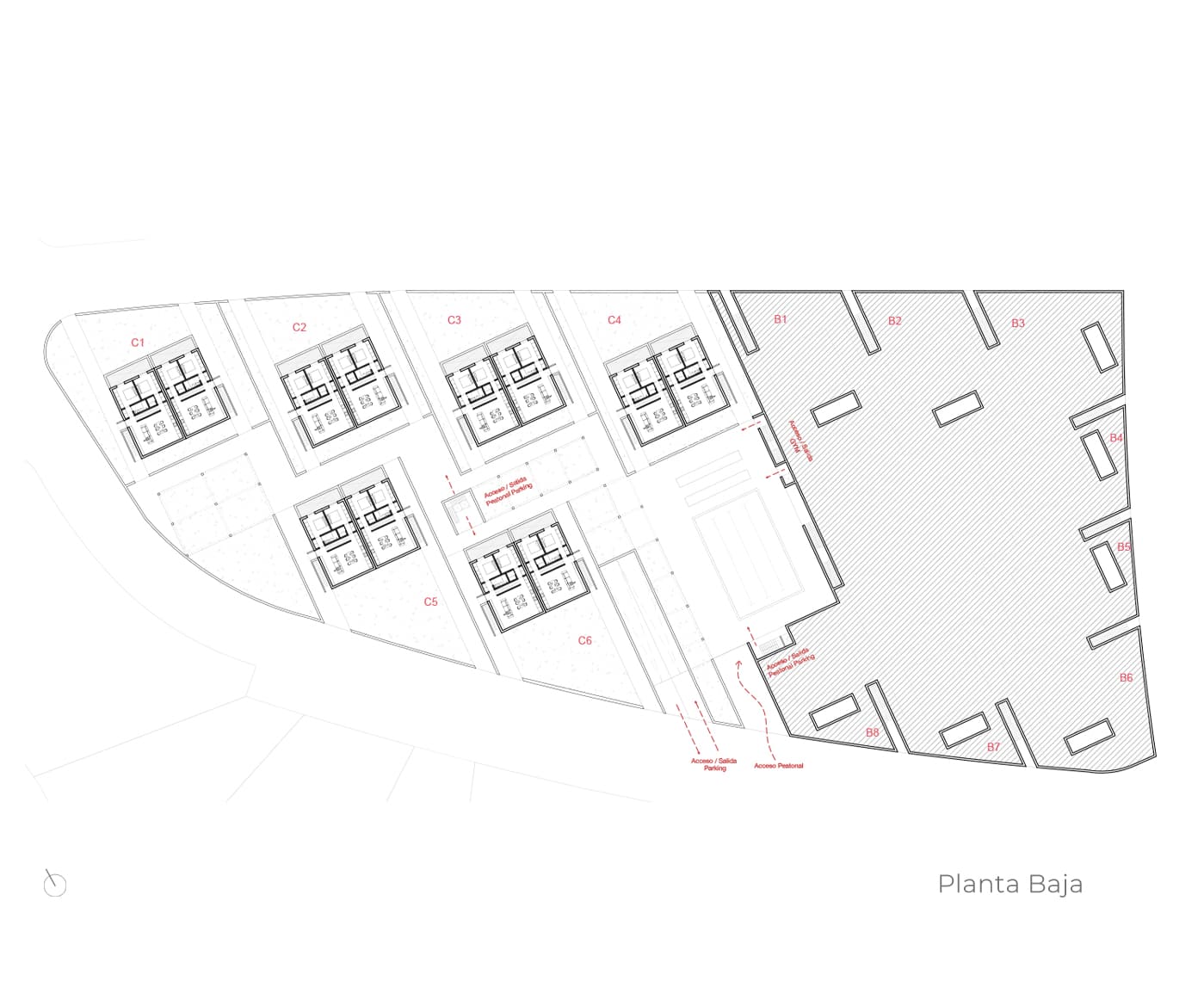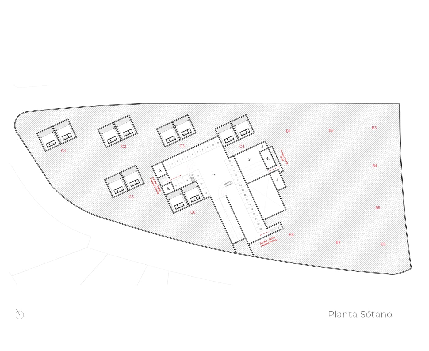 The boundary between the homes and the common space is blurred with the aim of generating a space understood from the totality of the ensemble, avoiding a massive separation between the pieces and employing more transparent systems such as vegetation. Spaces for play, sports, and swimming pool are interconnected and always surrounded by native plant species, respecting the existing ones and incorporating new ones.